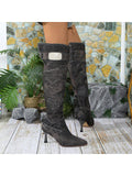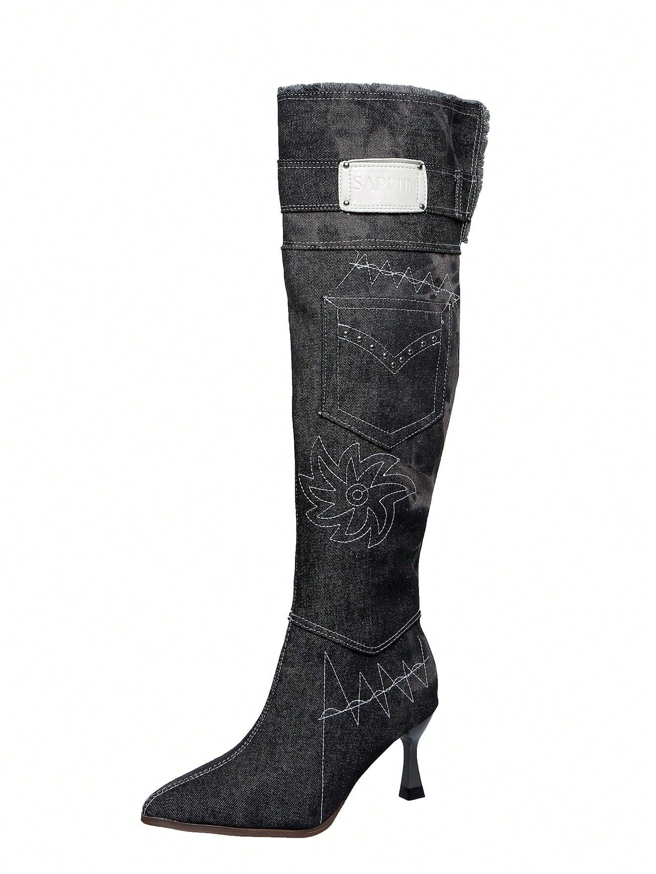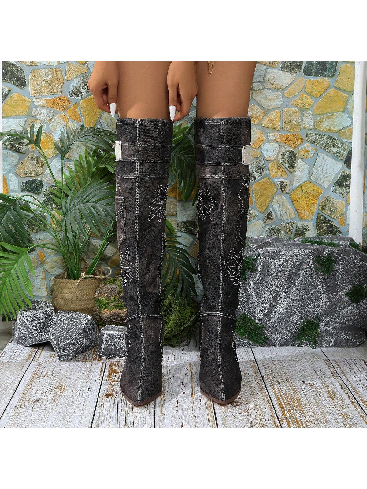 Women's Elegant Embroidered Silver Sequins Over-The-Knee Boots - Trendy and Sexy