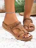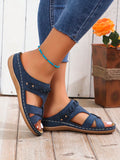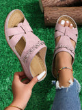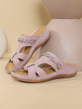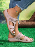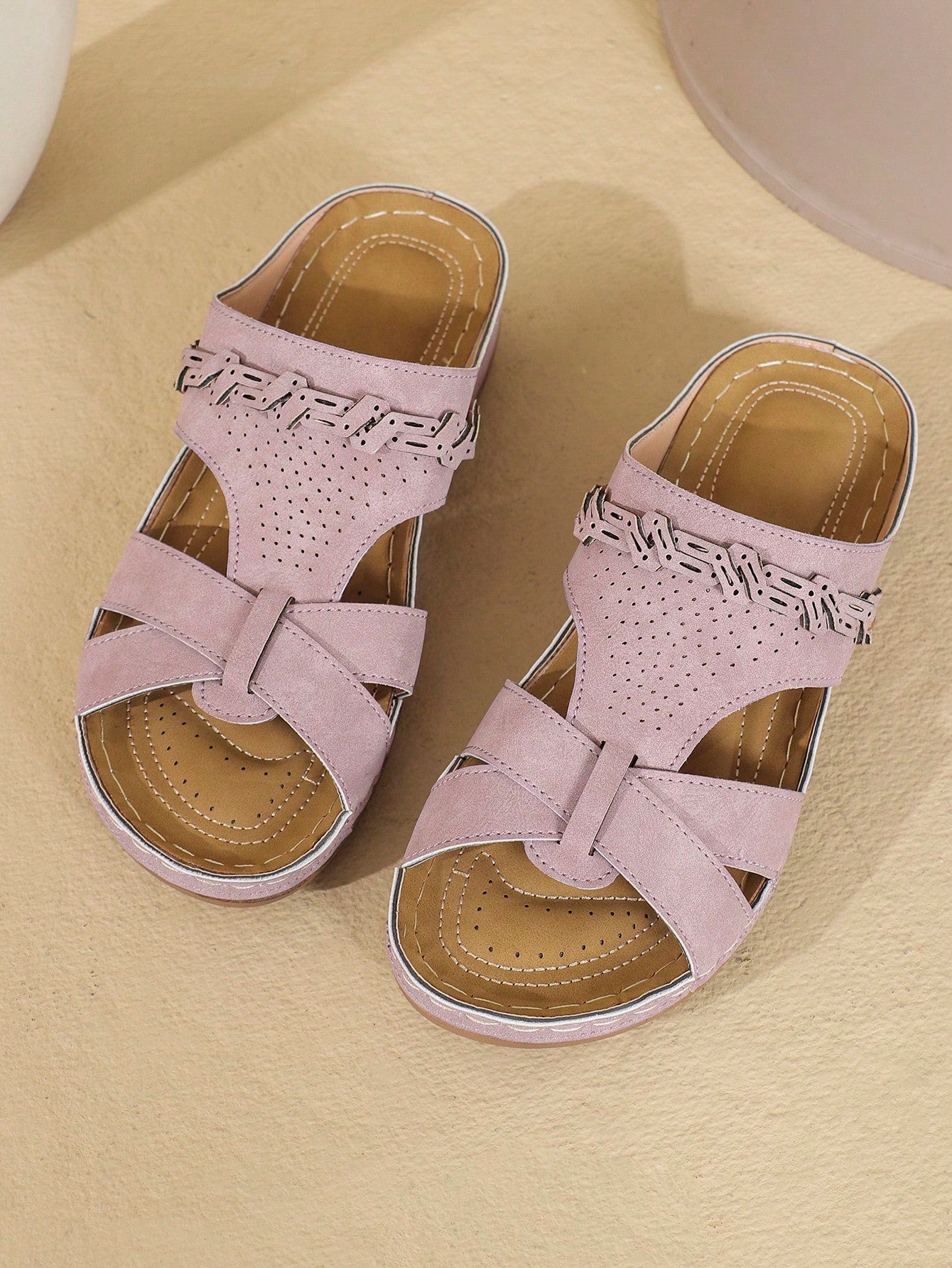 Women's Fashionable Hollow Out Wedge Sandals with Cross Strap Rivet Detail