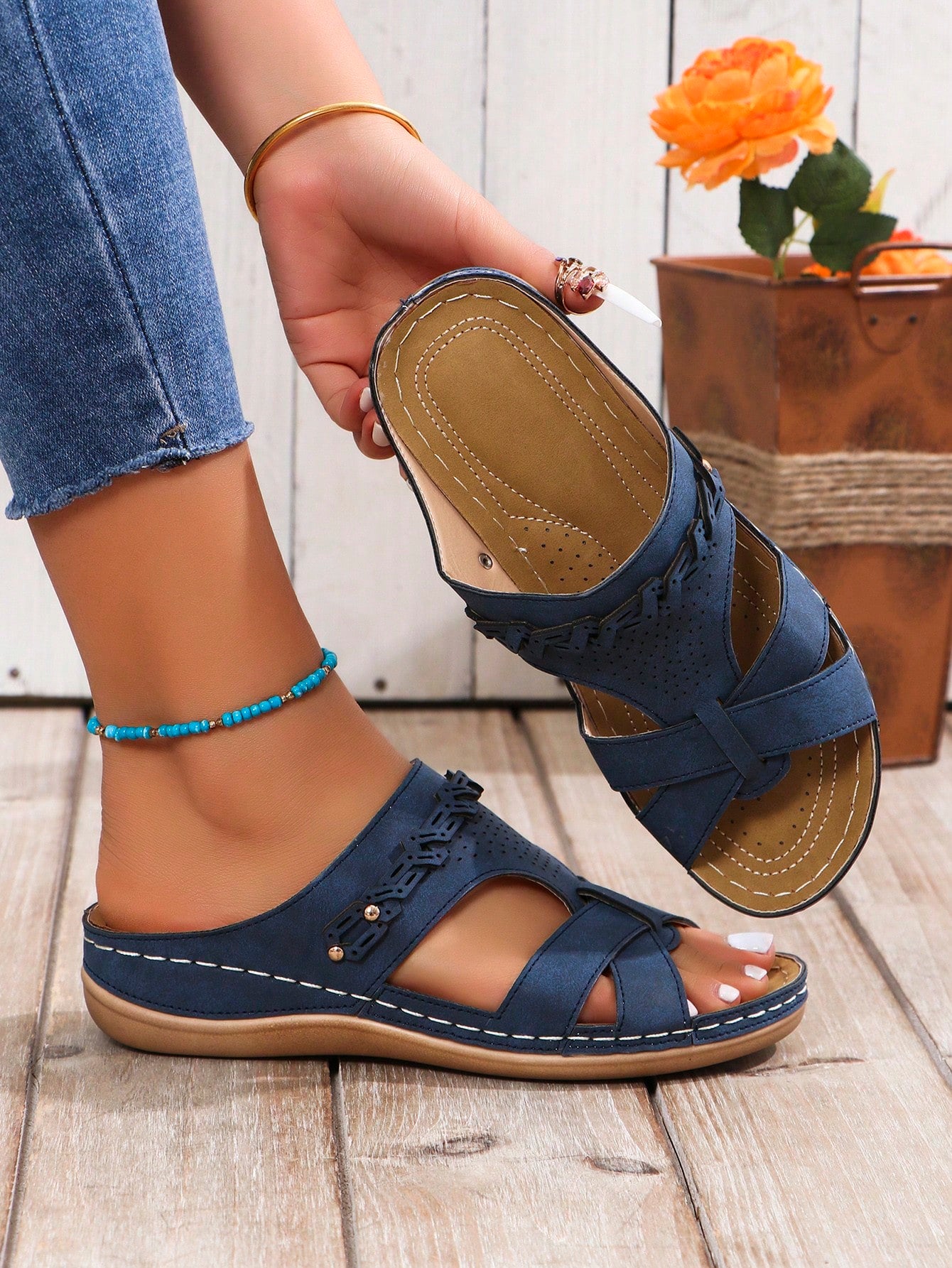 Upgrade your summer wardrobe with these Women's Wedge Sandals. Featuring a fashionable hollow out design, cross strap with rivet detailing, and a comfortable wedge heel, these sandals are the perfect combination of style and comfort. Elevate any outfit with these chic and versatile sandals.
