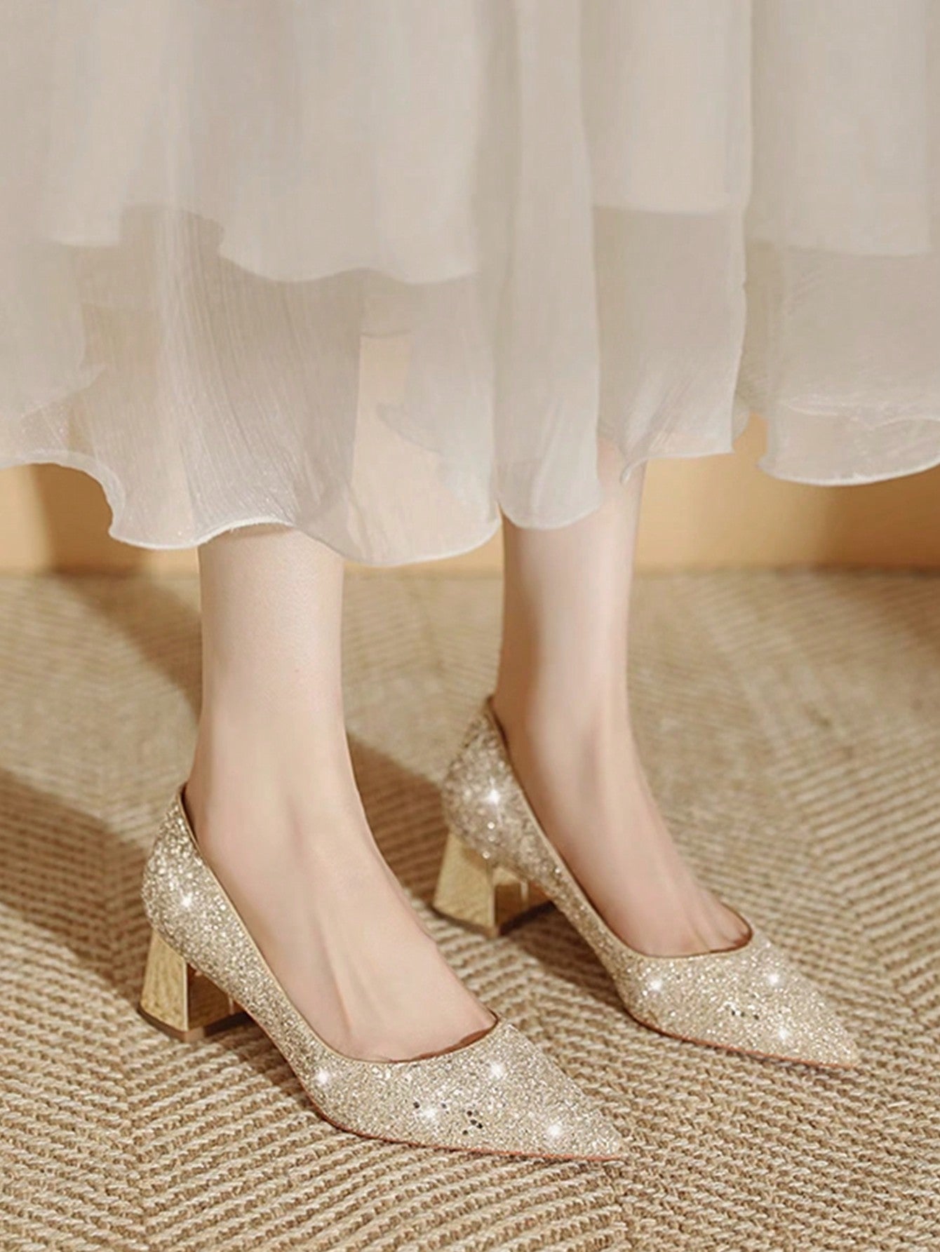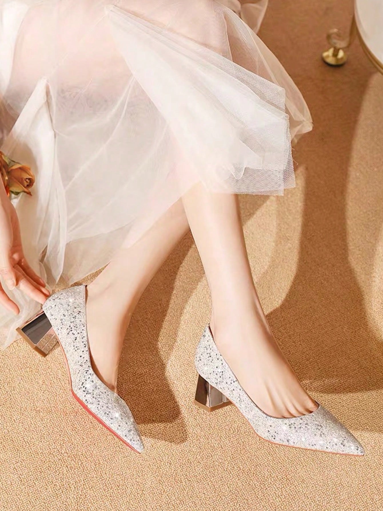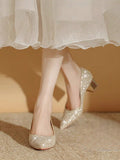 Women's Glitter Chunky Heel Party Pumps