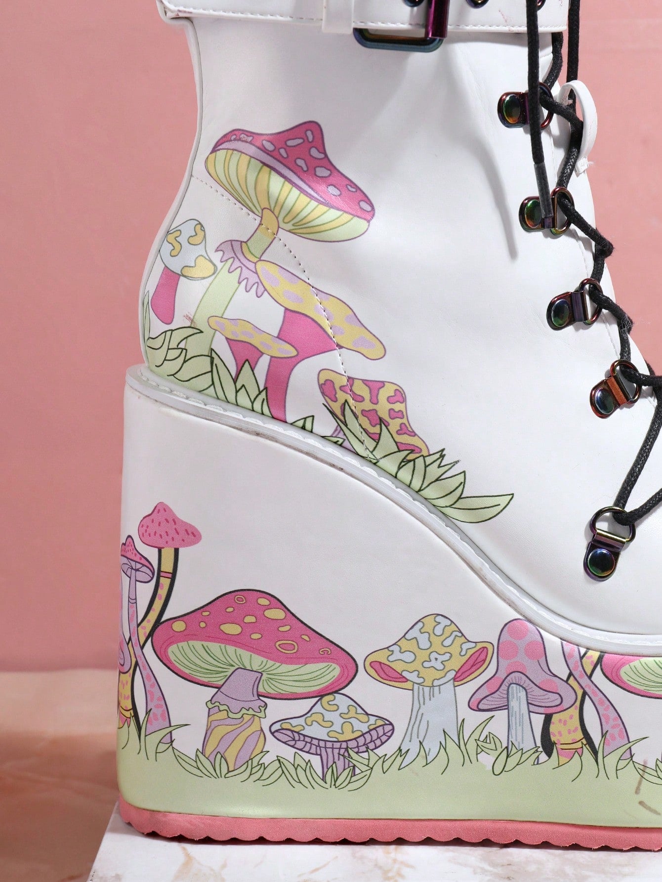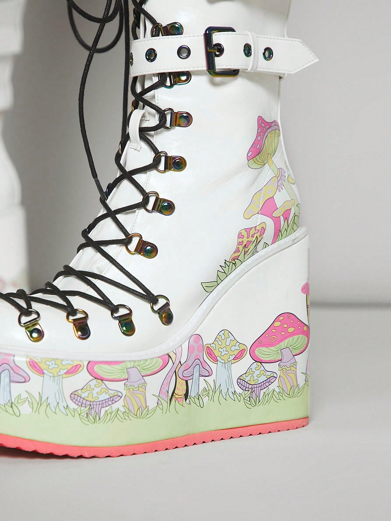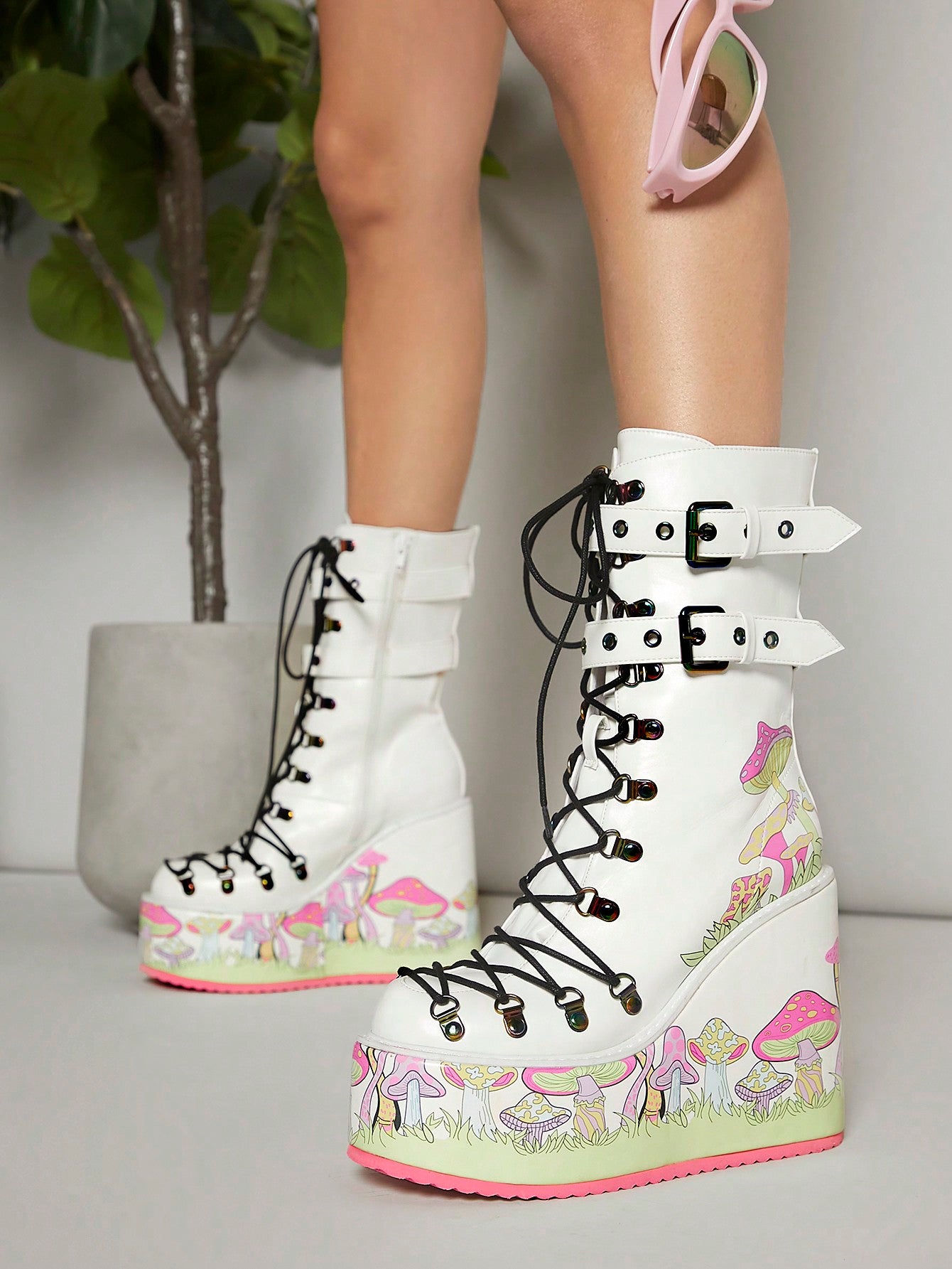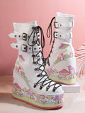 Women's Stylish White Wedge Boots with Thick Sole for Fashionable Statement