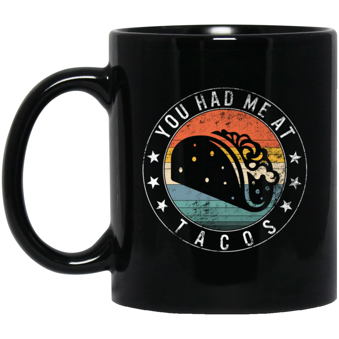 Womens Taco, You Had Me At Tacos Retro Black Mug