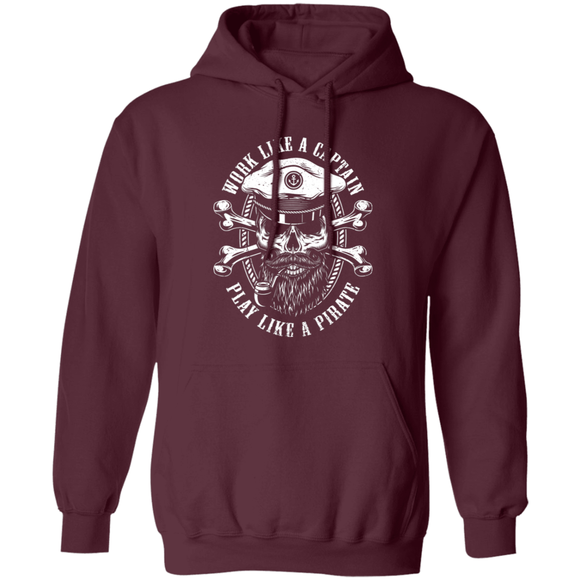 Work Like A Captain, Play Like A Pirate, Retro Pirate Silhouette Pullover Hoodie