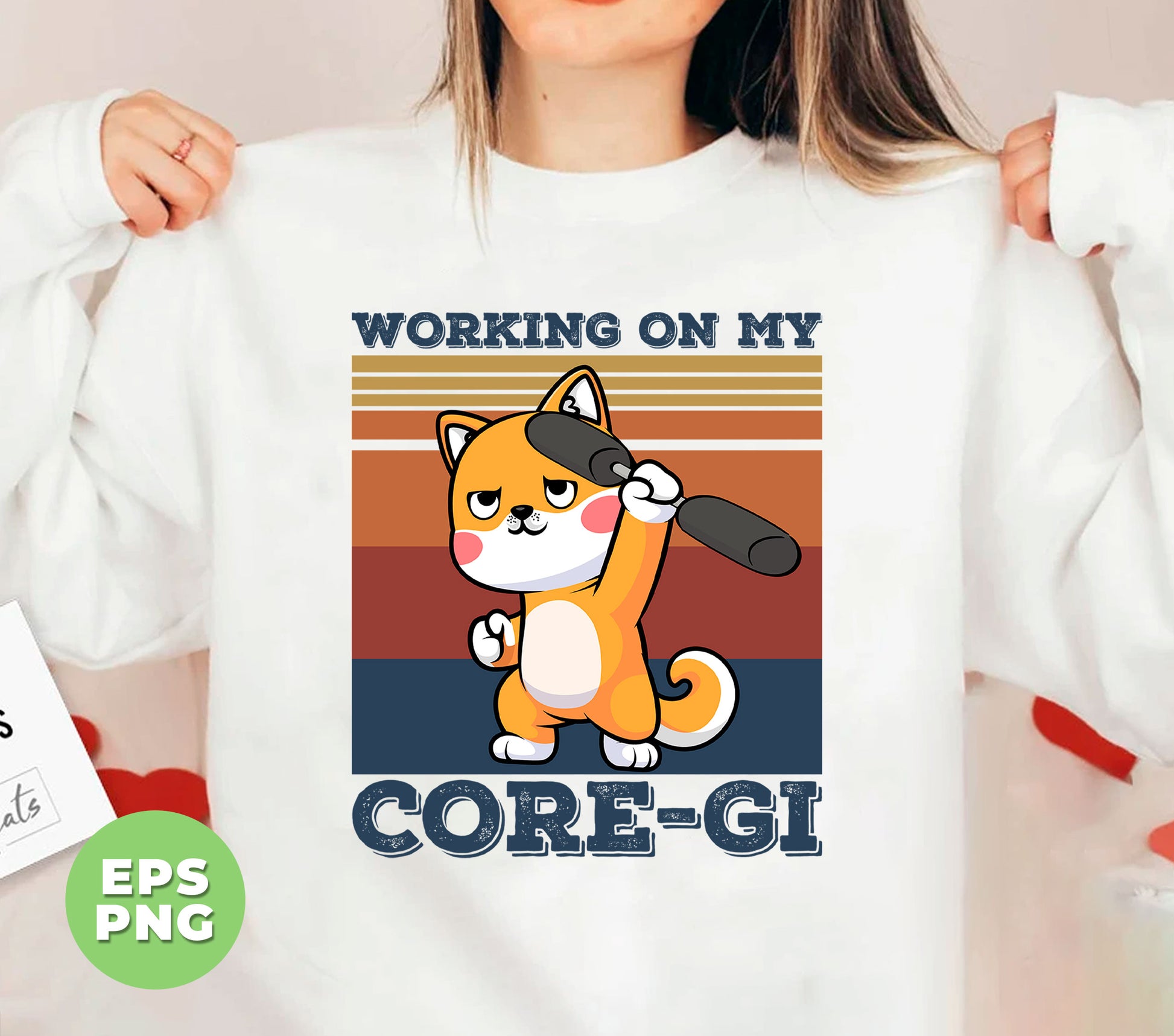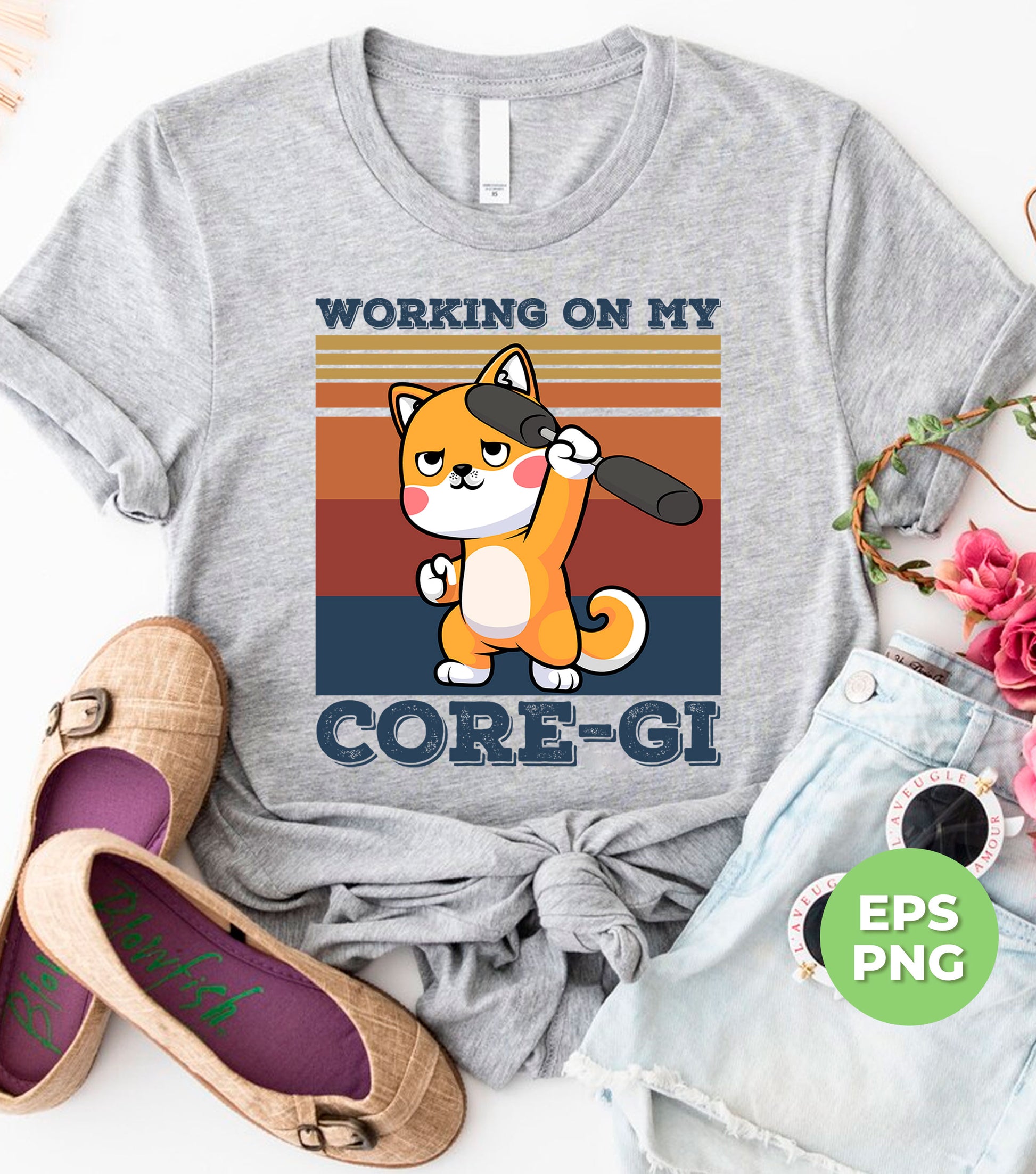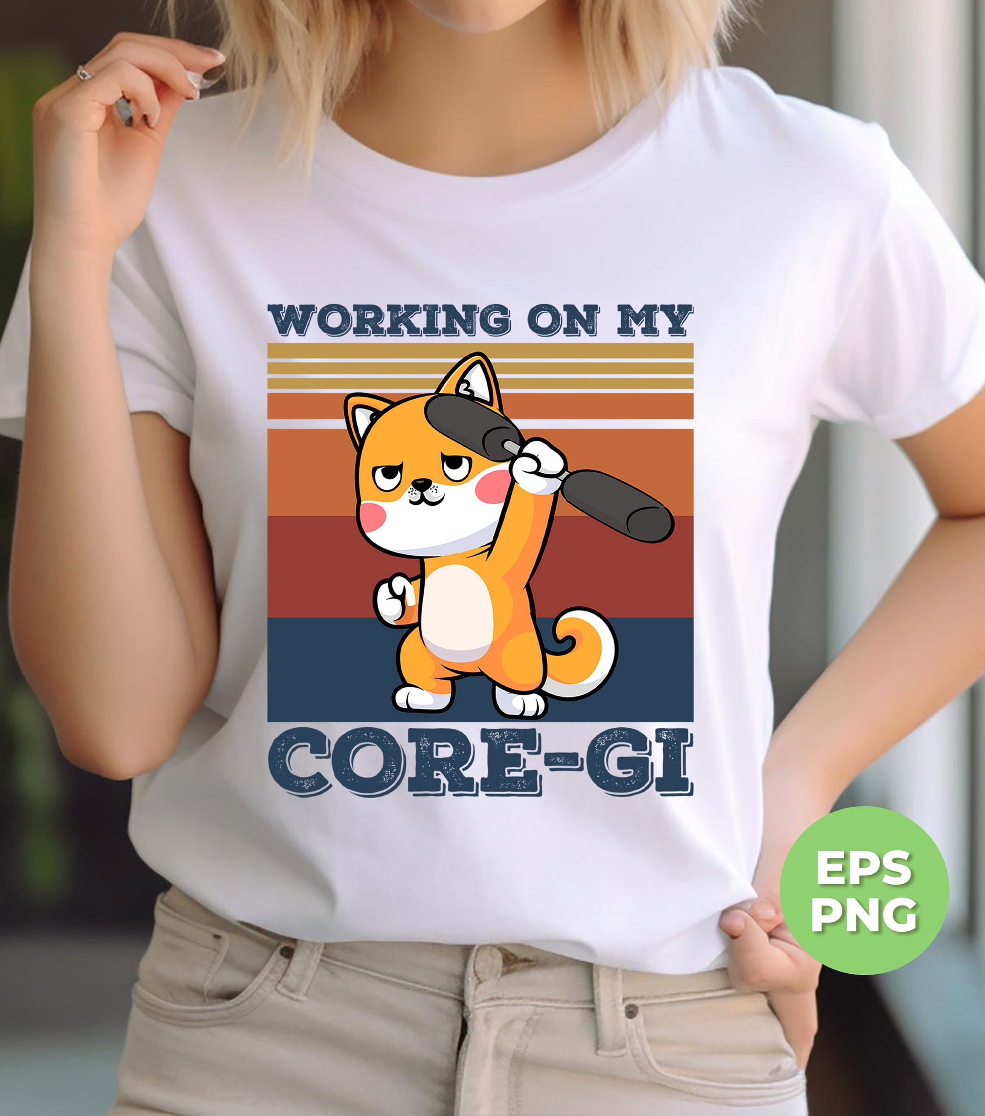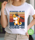 Boost your workout with our Working On My Core-gi design featuring a retro corgi lover. Stay motivated and entertained during your fitness routine with this funny and adorable fitness corgi. Digital files available for easy use. Get your workout on with our cute and unique design!