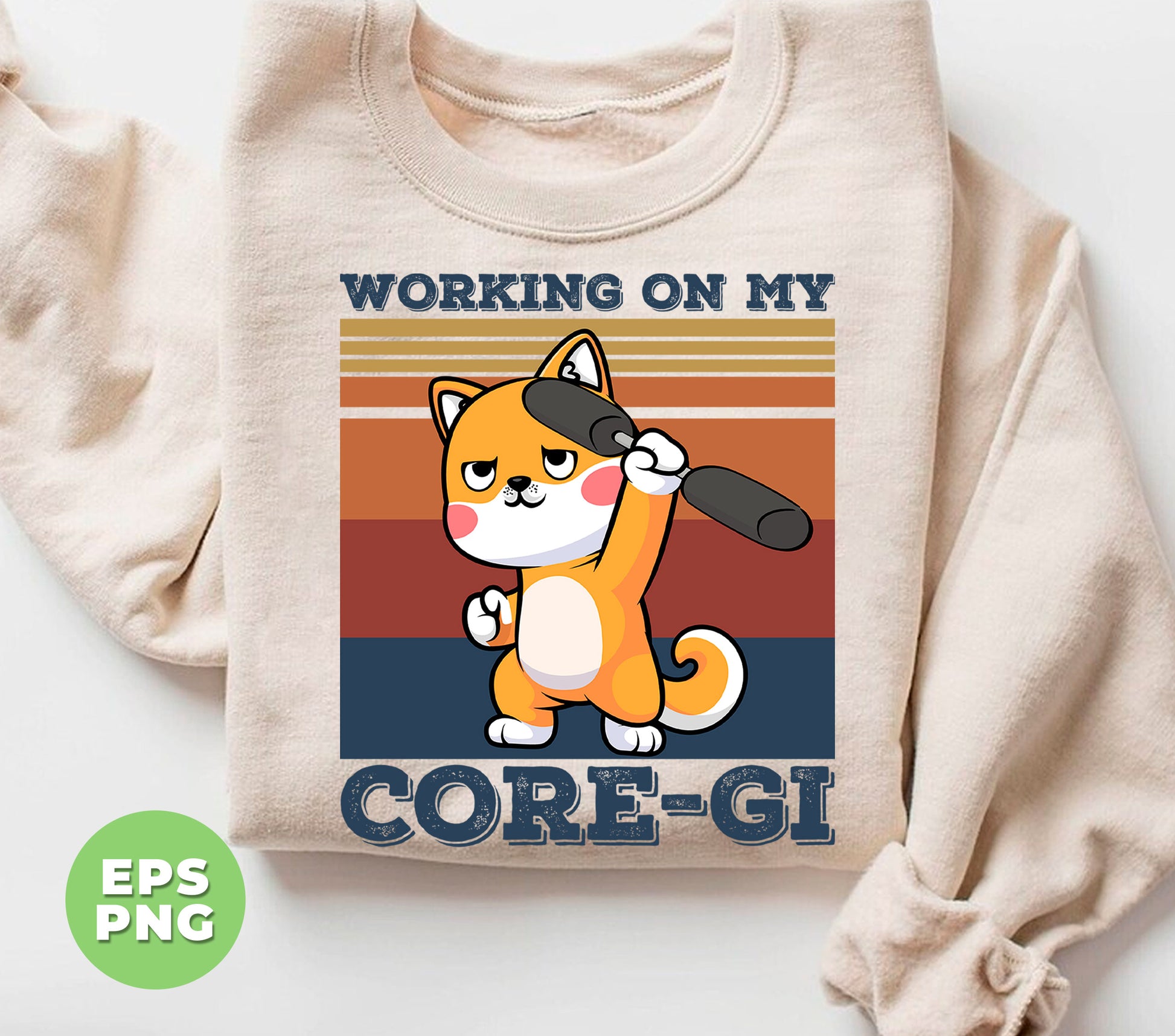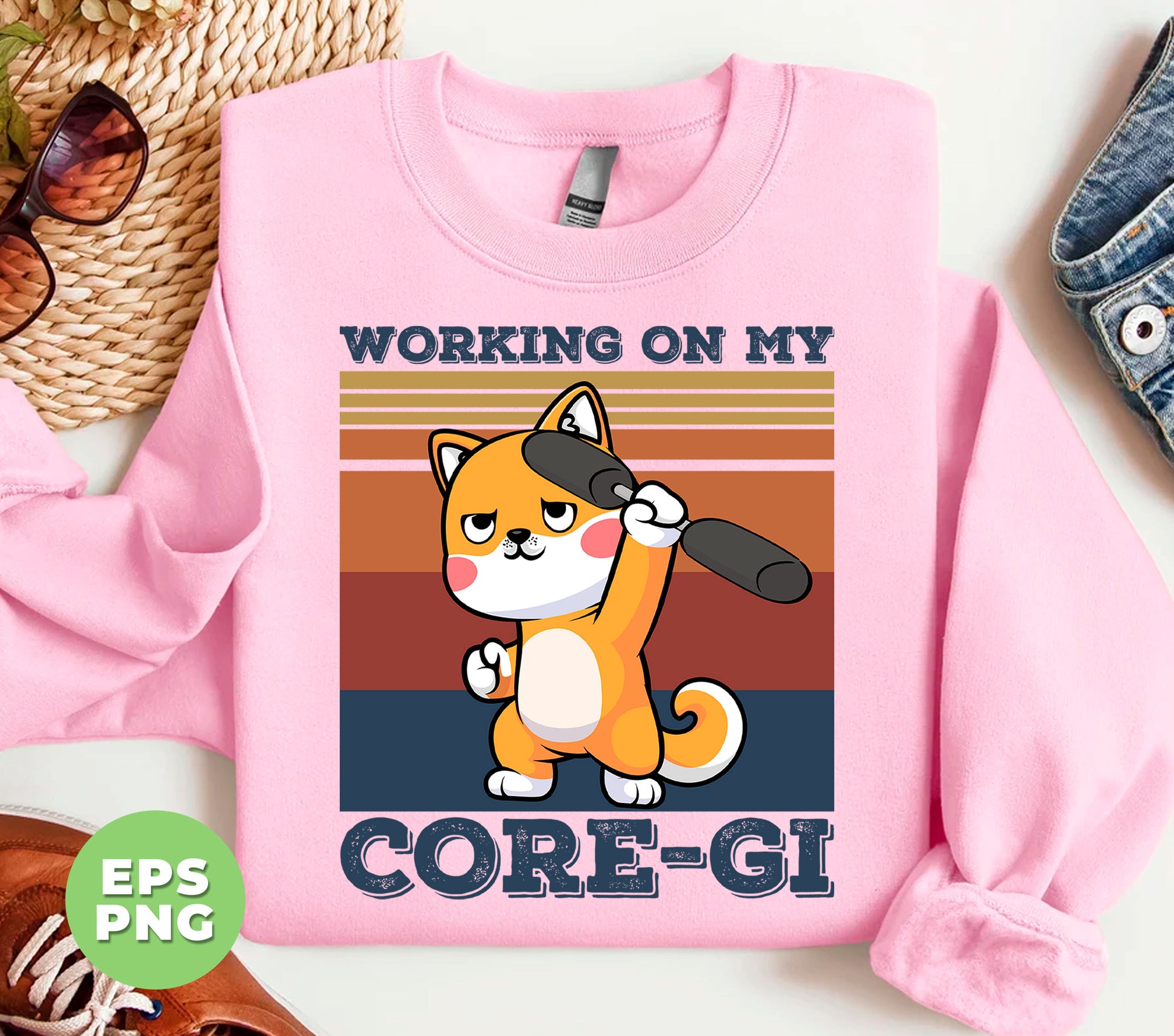 Working On My Core-gi, Retro Corgi Lover, Funny Workout, Fitness Corgi, Digital Files, Png Sublimation