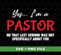 Yes, I'm A Pastor, No That Last Sermon Was Not Specifically About You, Pastor Lover, Digital Files, Png Sublimation