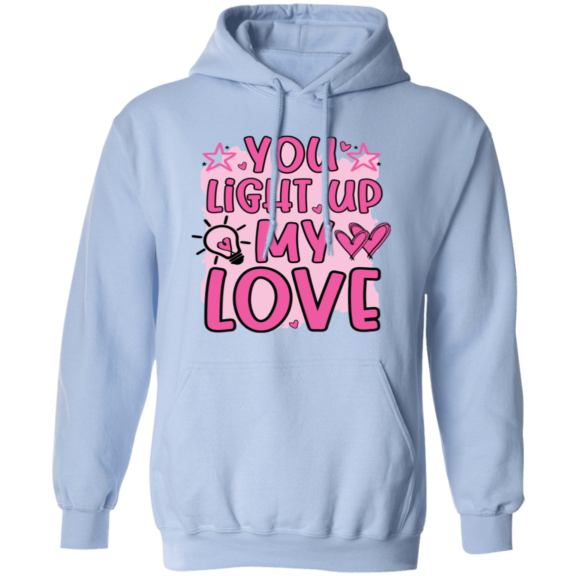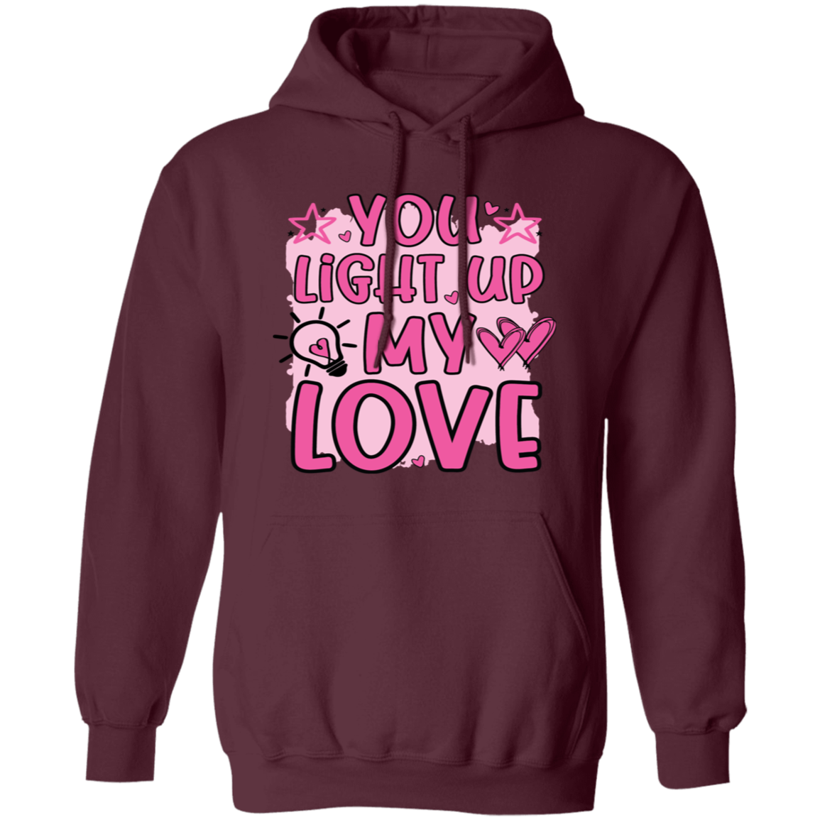 You Light Up My Love, Valentine Love, Pink Valentine Pullover Hoodie